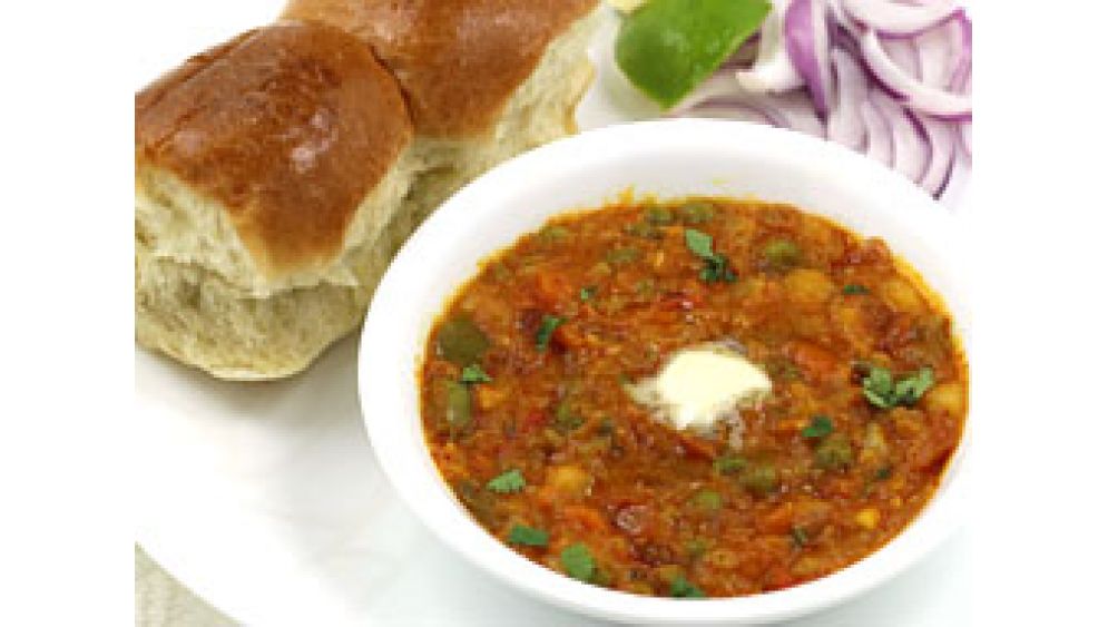 Transfer prepared bhaji to a serving bowl and garnish with a cube of butter. Serve hot with butter roasted pav, sliced onion and lemon wedges.
