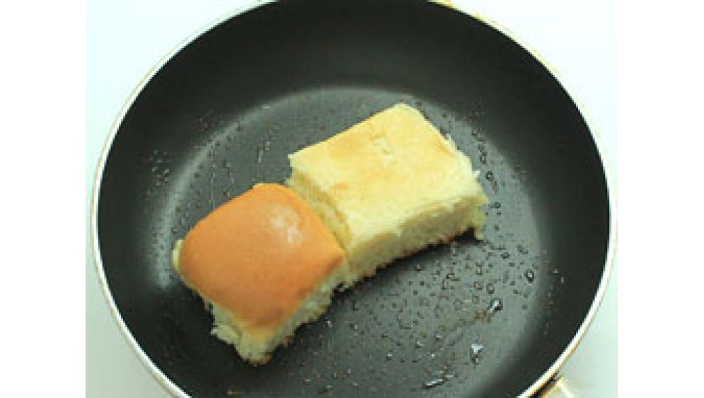 Cut the pav buns horizontally into halves. Heat tava over medium flame. Add a tablespoon of butter and place halved pav buns over it. Shallow fry both sides until light brown spots appear, it will take around 30 seconds for each side to turn light brown. Transfer to the plate. Shallow fry remaining pavs.